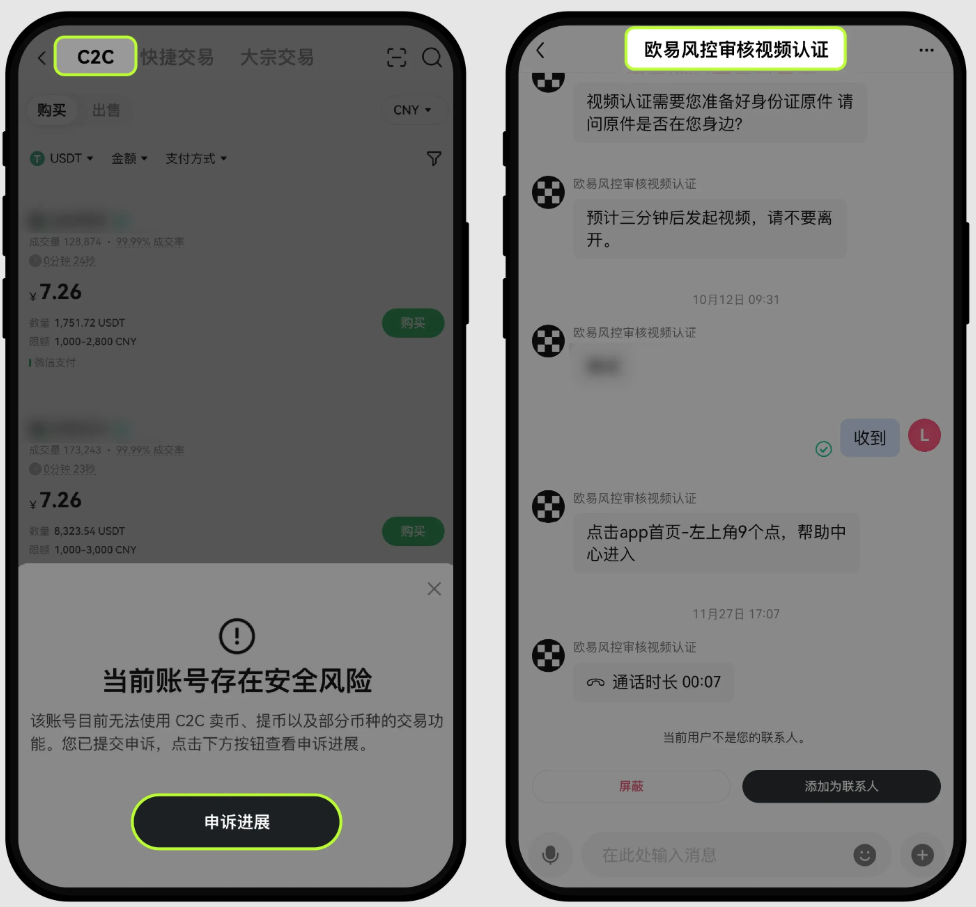 触发风控请您不要担心,可以点击 App 首页- C2C 买币,根据页面下方跳出的弹窗提示点击申诉按钮进行申诉。