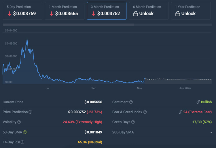 短期模型预测将会有 -25.49% 的修正,可能在2025年12月7日降至 $0.003665。然后,长期的前景依然乐观。